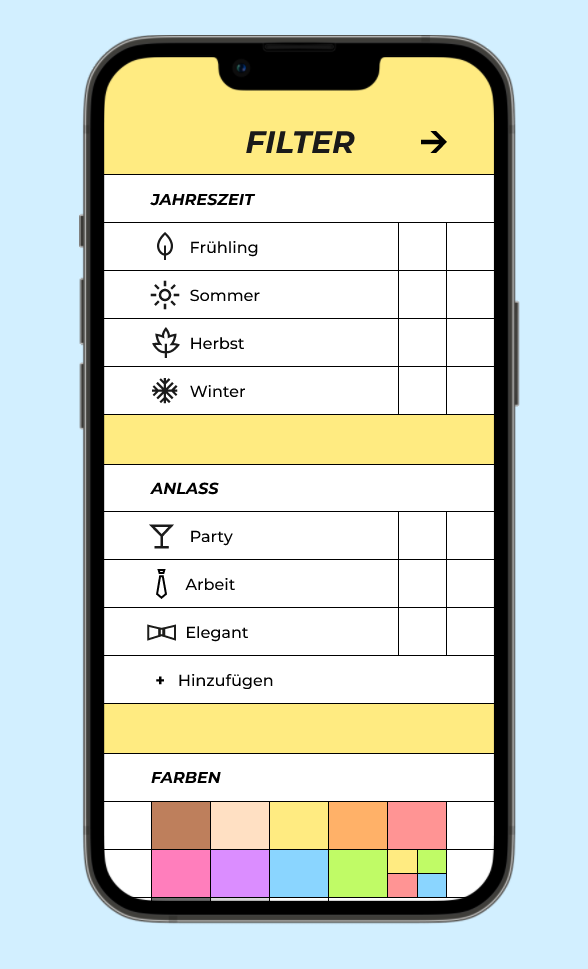 Mithilfe der App »In your wardrobe« lässt sich der Kleiderschrank einfach durch Scannen mit dem Smartphone oder Tablet digitalisieren. Der eigene digitale Kleiderschrank kann individuell gefiltert und durchsucht werden. So findet man auch wenig getragene Kleidung, welche man vielleicht schon verloren geglaubt hat. Aus den einzelnen Kleidungsstücken werden durch »In your wardrobe« neue Outfits vorgeschlagen, welche die Klamottenwahl am Morgen erleichtern sollen.