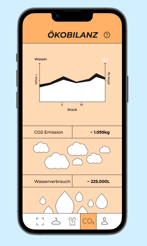Zusätzlich errechnet die App anhand der umfassenden Angaben der Kleidung die Umweltbilanz dieser und die des gesamten Kleiderschranks. So wird das Them